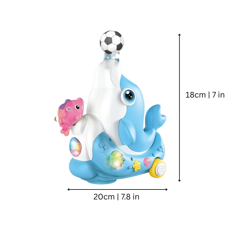 Das schwebende Design des Delfins lädt Kinder ein, zu erkunden, wie Bewegung, Luft und Balance zusammenarbeiten. Der schwebende Ball wird zu einem magischen Moment, der ihre Aufmerksamkeit fesselt und sie in das zauberhafte Spiel einführt. Es fördert Kreativität, Experimentierfreude und die Freude, Dinge selbst herauszufinden.