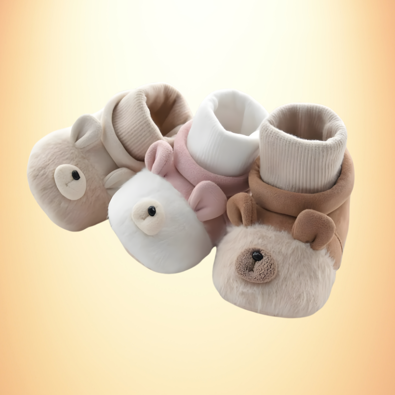 Wickle winzige Füße in Wärme und Niedlichkeit mit Kuschelinoa, weichen, tierinspirierten Socken-Schuhen, die dafür entworfen wurden, Babys beim Krabbeln, Stehen und Erkunden ihrer ersten Schritte bequem, unterstützt und stabil zu halten.