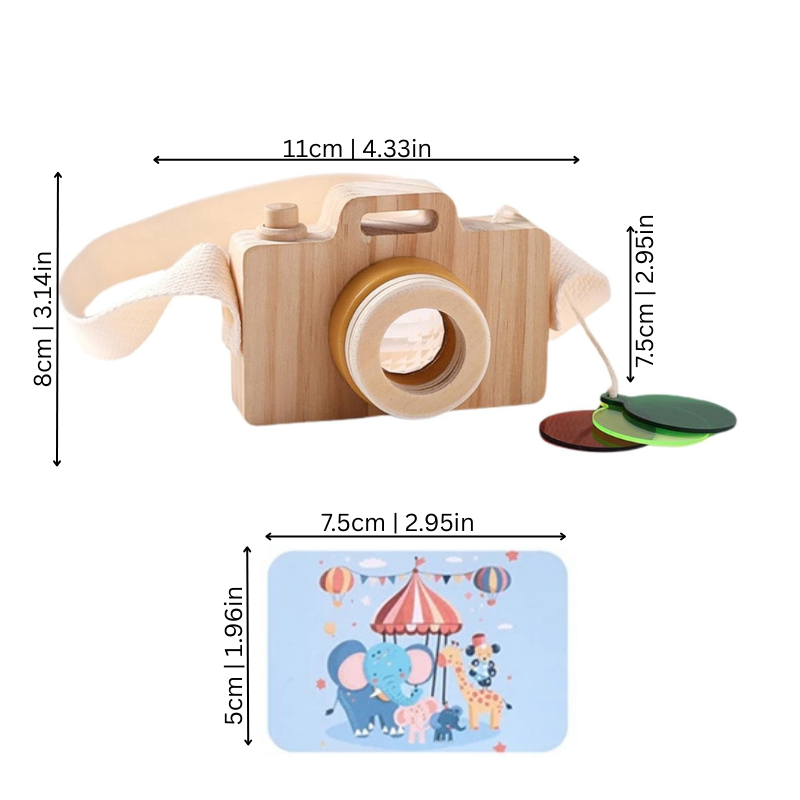 Verwandle alltägliche Spaziergänge und Spielzeiten in bunte Entdeckungen mit Holzlicht—einem Holz-Montessori-Kameraspielzeug, das Kinder kreativ beschäftigt, das Rollenspiel wie Erwachsene fördert und sie dazu bringt, langsamer zu werden und die Welt mit frischer Begeisterung wahrzunehmen.