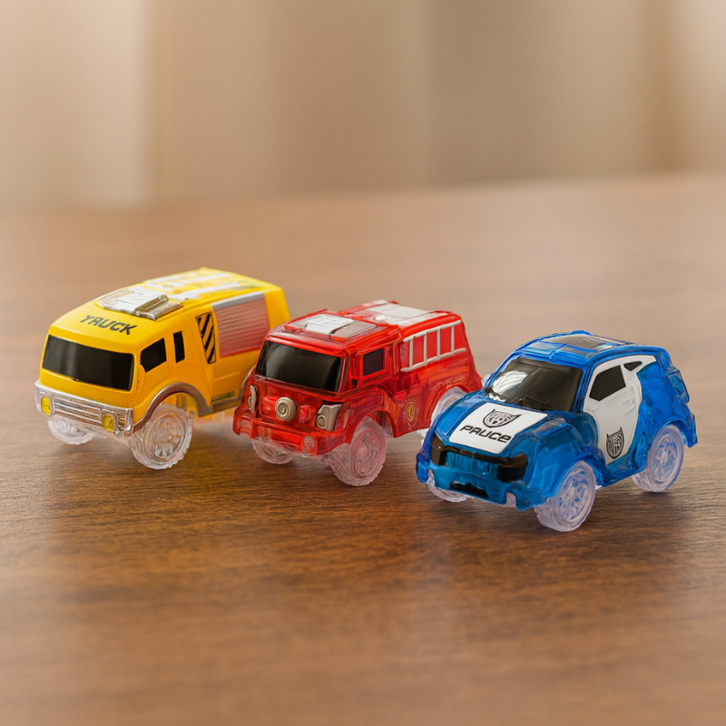 Verwandle gewöhnliche Nachmittage in rasante Abenteuer mit Blitzfahr – einem leuchtenden Rennwagen-Set, das jedem Track Aufregung verleiht, während die Kinder die blitzenden LED Lichter in brillanten Farben vorbeirauschen sehen, was ihre Fantasie, Teamarbeit und Freude anregt und unvergessliche Spielmomente sowohl tagsüber als auch nachts schafft.
