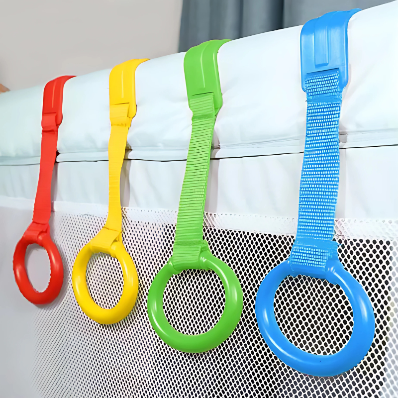 Kein Werkzeug, kein Aufwand – einfach an Laufstall oder Bett befestigen und los geht’s! Ob zu Hause oder unterwegs, die leichten Ringe lassen sich mühelos anbringen und entfernen, sodass dein Baby überall sicher üben kann. Gefertigt aus robusten, kindersicheren Materialien, halten sie selbst kräftigem Ziehen, Kauen und Entdecken stand.