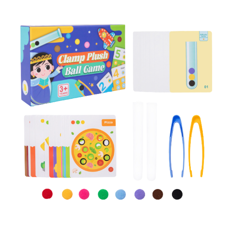Meine Tochter liebt dieses Pom-Pom-Set. Sie benutzt die Pinzette und sortiert die Farben ganz alleine. Das hilft ihr, sich zu konzentrieren und die Handkraft zu stärken.