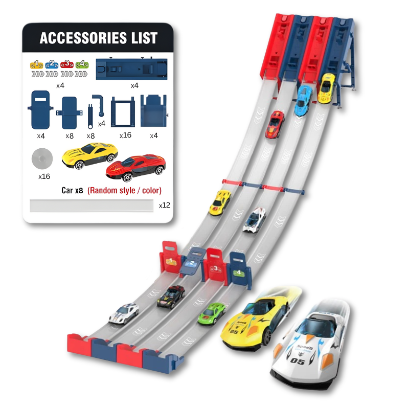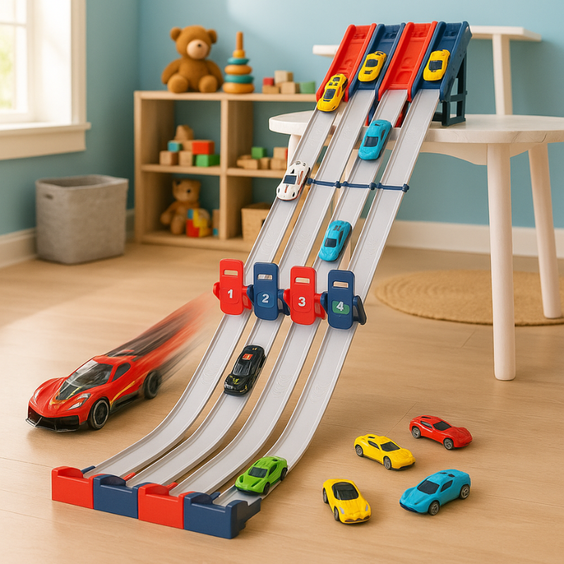 Keine rutschenden Strecken oder wackeligen Starts mehr. Die robusten Saugnäpfe halten die Strecke an Ort und Stelle, selbst während der wildesten Rennen. Eltern können den Kindern helfen, es in wenigen Minuten vorzubereiten. Sobald es aufgebaut ist, geht der Spaß los und hört nicht auf.