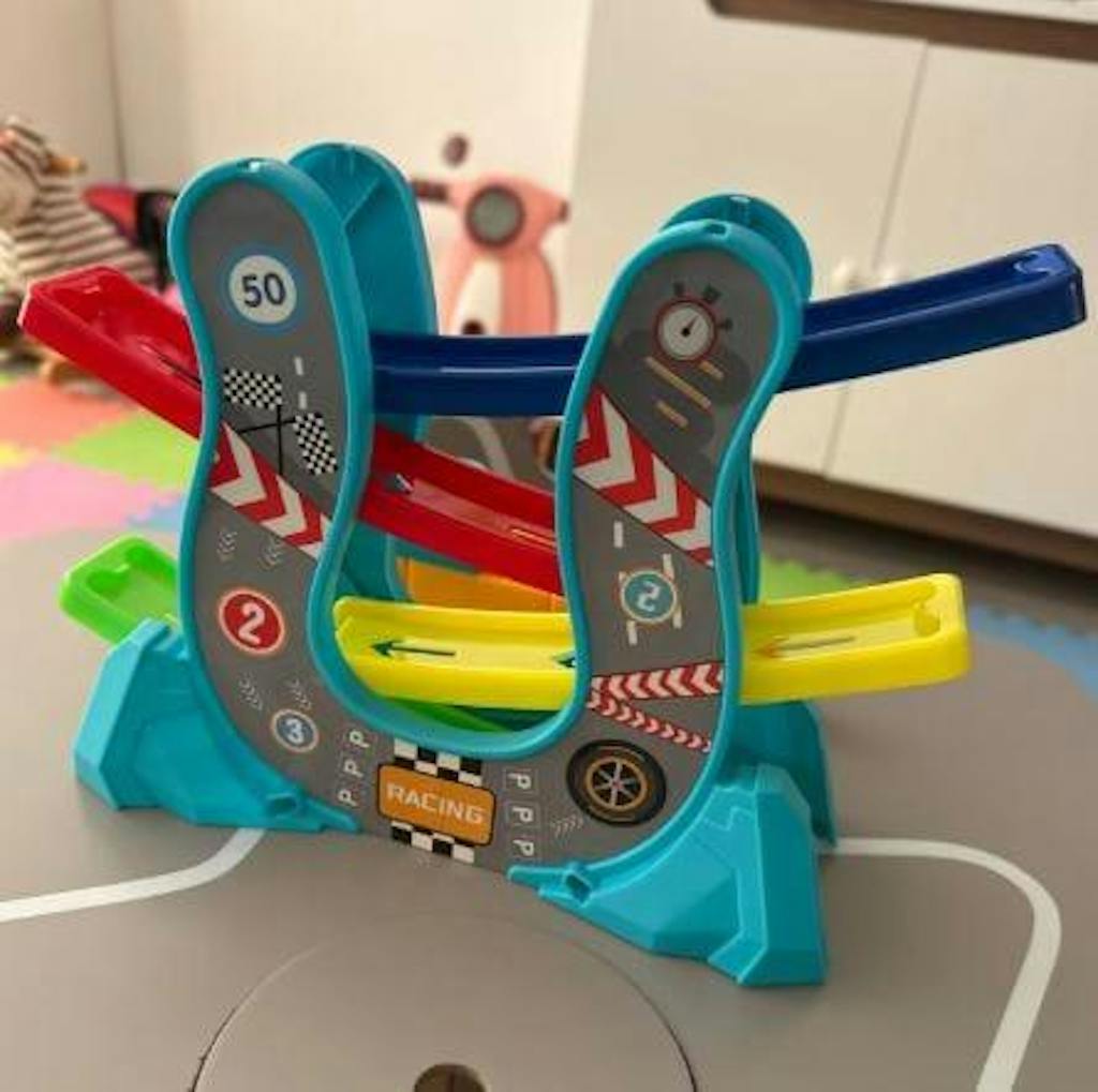 Diese Rennbahn ist für kleine Rennfahrer konzipiert, die es lieben, Autos die Rampen hinuntersausen zu sehen. Einfach ein Auto auf die Startrampe setzen, loslassen und zusehen, wie es die Bahn entlangzoomt! Die glatte Rampenstruktur sorgt für einen nahtlosen Ablauf, sodass die Kinder frustfreies Spielen genießen können. Es fördert auch die Hand-Augen-Koordination und die Feinmotorik, während es endlosen Spaß bietet.