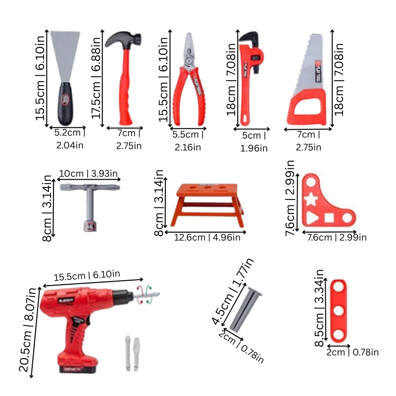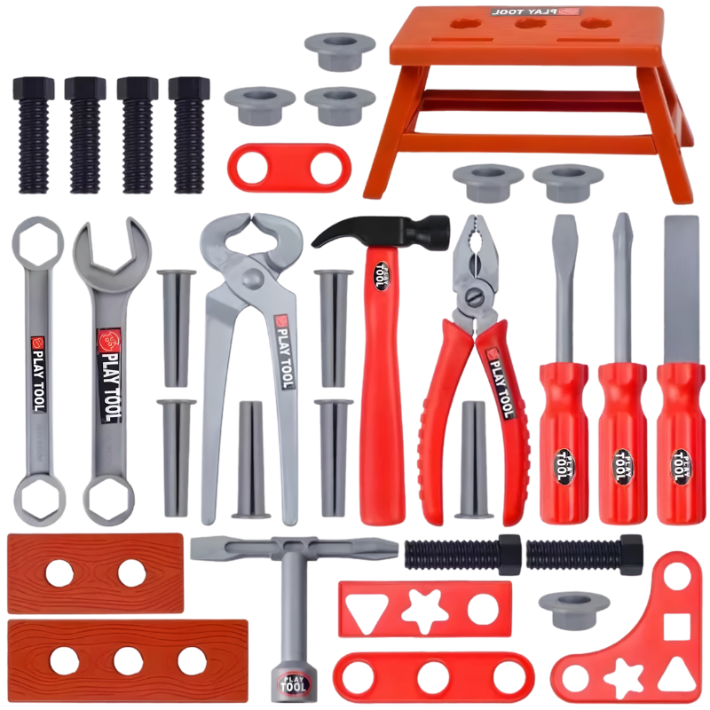 Sie drehen, klopfen und bauen, stärken die Hand-Augen-Koordination mit jeder vorgetäuschten Aufgabe. Das Zählen der Teile und das Zuordnen der Werkzeuge fördert das frühe Lernen, ohne dass es sich wie Unterricht anfühlt. Kinder üben Problemlösung, indem sie herausfinden, welches Werkzeug jede kleine Herausforderung „löst“.