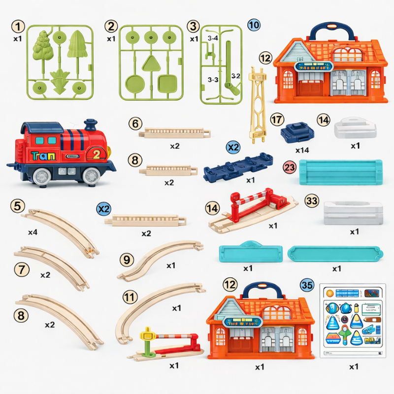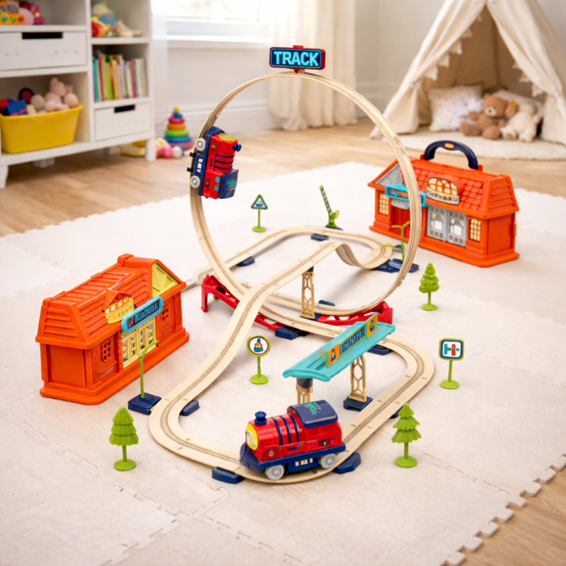 Mit 69 Teilen zum Verbinden, Biegen, Zusammenführen und Erhöhen bauen Kinder nicht nur Gleise — sie gestalten ihre eigene Welt, testen neue Ideen, beheben, was nicht funktioniert, und sind stolz, wenn ihr Zug reibungslos über Brücken und Kurven fährt, die sie selbst erstellt haben. Dieses Gefühl der Leistung stärkt das echte Selbstbewusstsein.